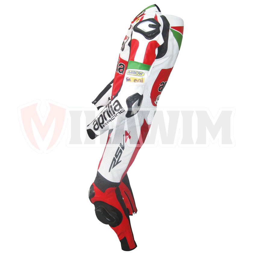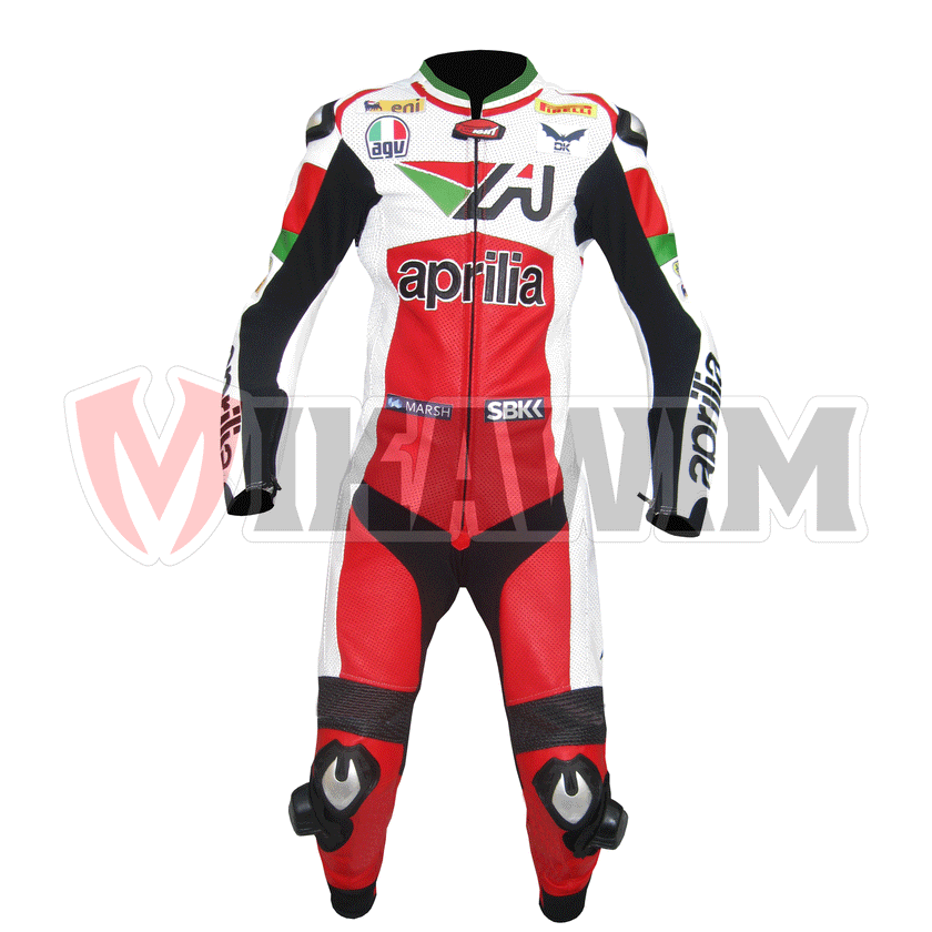 Apprilia Motorbike Racing Leather Suit is especially designed for professional bikers to fulfil their biking passion on track with great safety. This suit features excellent design & comfort, 100% genuine Cowhide leather, Approved internal & external Protectors on Knee, Shoulder, Elbows and Back, YKK Zippers for Performance, Outer Knee sliders for performance. Full ventilated Chest to keep the biker cool while riding (Optional). Available in Men's Fitting and Women's Fitting. Available in all sizes & Custom Size.