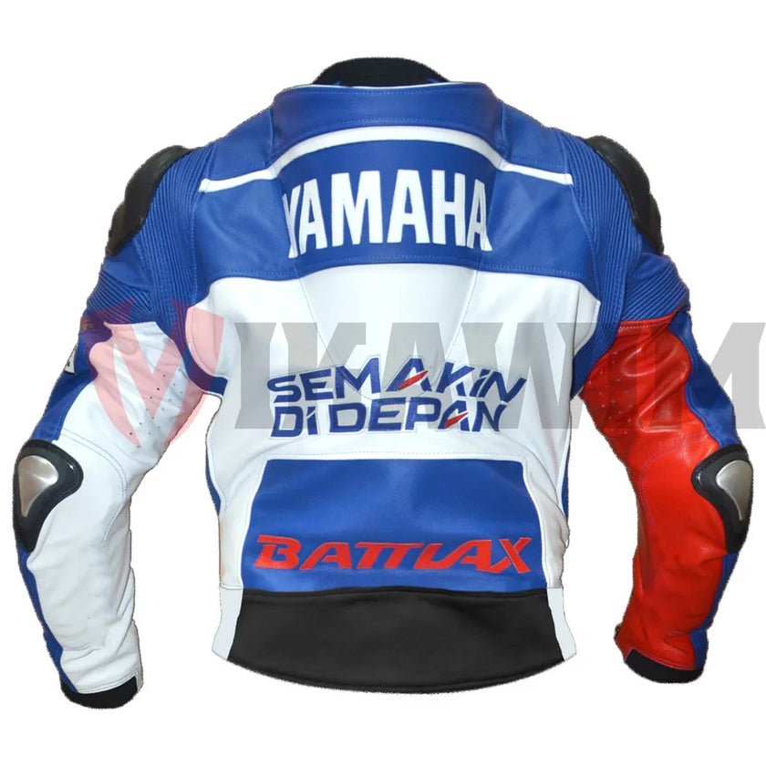 Yamaha Motorbike Racing Leather Jacket is especially designed for professional bikers to fulfill their biking passion on track with great safety. This jacket features excellent design & comfort, 100% genuine Cowhide leather, Approved internal & external Protectors on Knee, Shoulder, Elbows and Back, YKK Zippers for Performance, Outer Knee sliders for performance. Full ventilated Chest to keep the biker cool while riding (Optional). Available in all sizes
